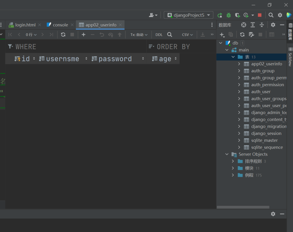 使用sqlite时,先在app文件夹里的models.py文件里创建类—>就是相当于写表字段,最后写命令执行就能创建了。